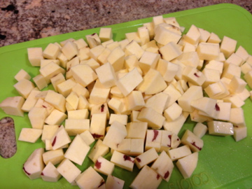 2. Bring a pot of water to boil. Meanwhile, peel and cut the Japanese sweet potato into small cubes. Boil the potatoes for 5 minutes, drain the water, and set them aside.