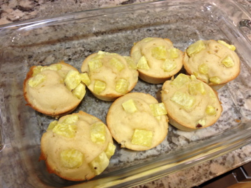 1. Lightly grease 12 muffin cups (or you can use cupcake liners) and preheat oven to 350 degrees.