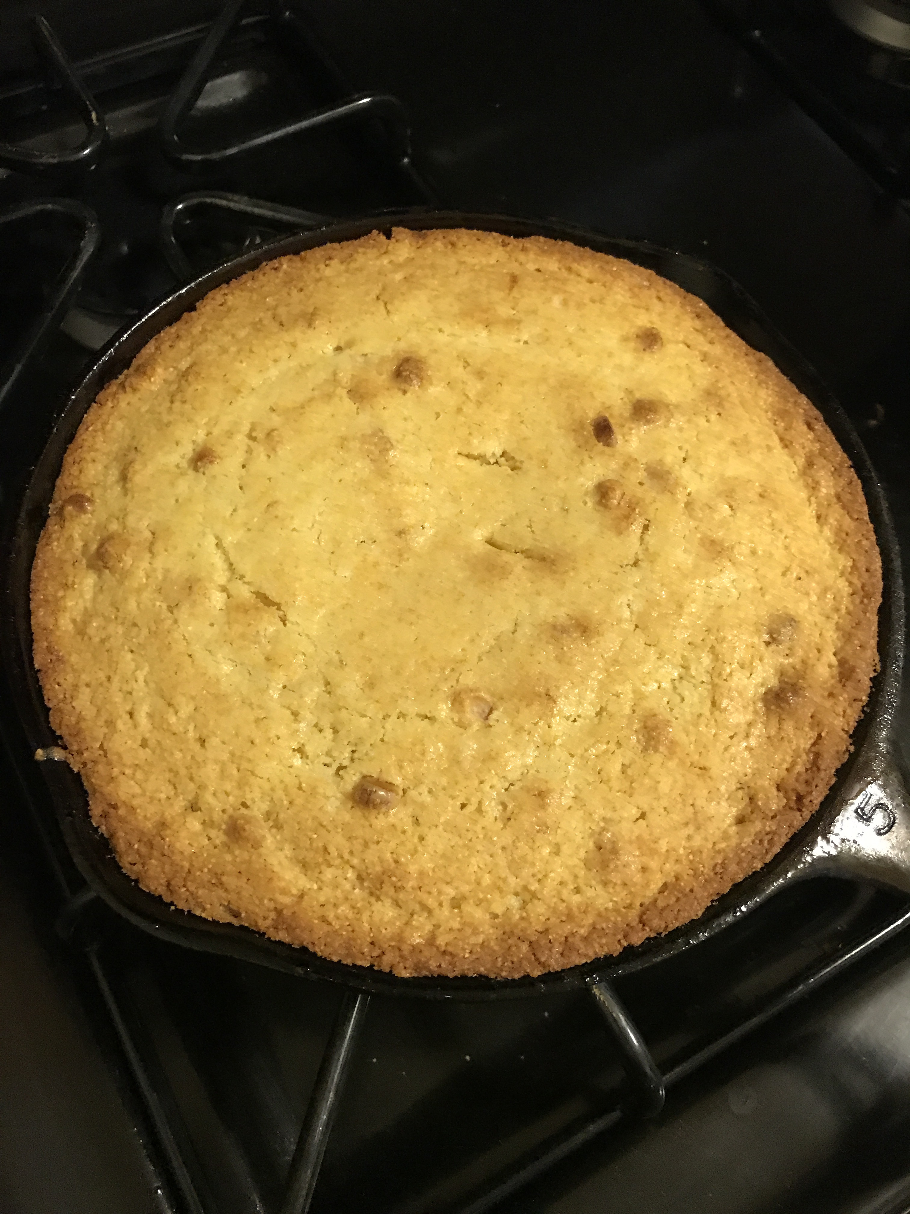 I had a box of Trader Joe’s cornbread mix but didn’t have any vegetable oil, so I used coconut oil and it resulted in a coconutty, deeelicuous, moist cornbread with a nice crust from my cast iron skillet!